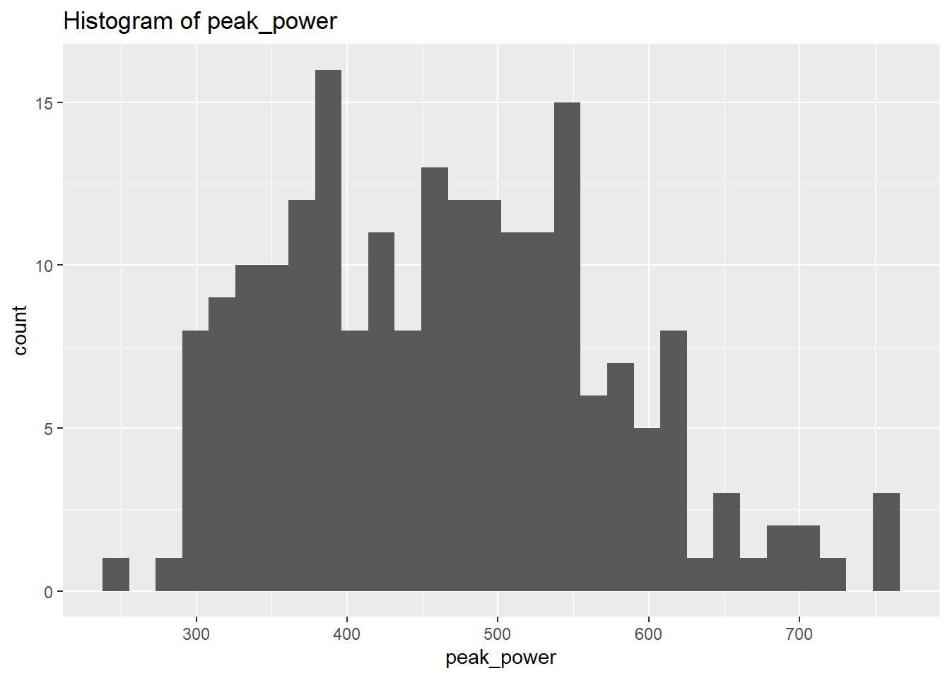 $ peak_power : num [1:1000] 234 202 223 212 238 ...