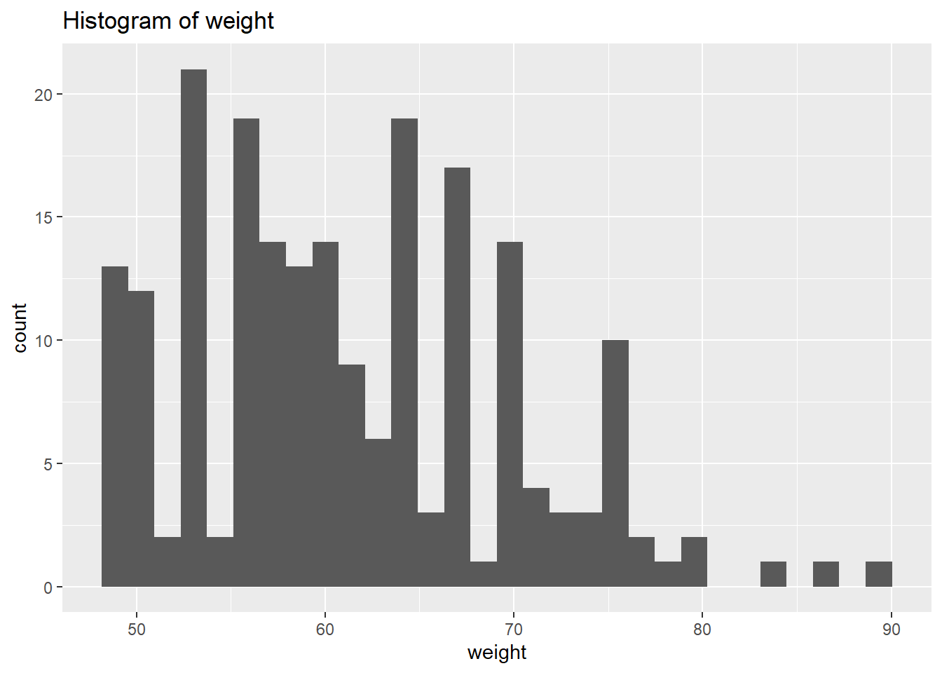 $ weight : num [1:1000] 40.8 43.9 44.3 44.6 44.7 ...