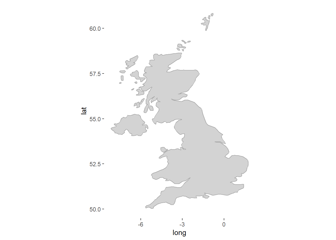 geom_polygon(data = UK, aes(x=long, y = lat, group = group),fill = "lightgrey", color = "darkgrey") +