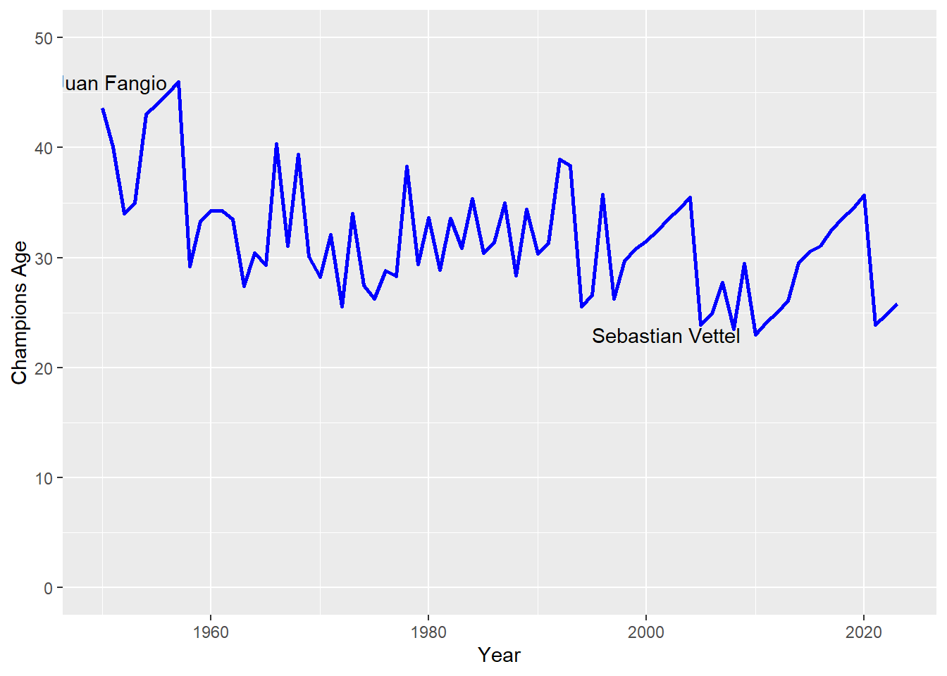 geom_text(data=MinAge,aes(label=DriverName),hjust=1.1, vjust=0.5)+