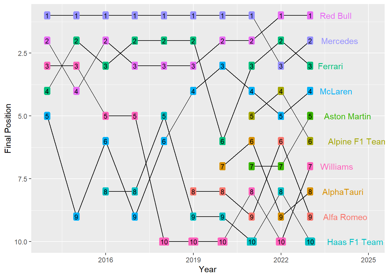 filter(RaceYear==2023 & DriversFinalPosition<11) %>%